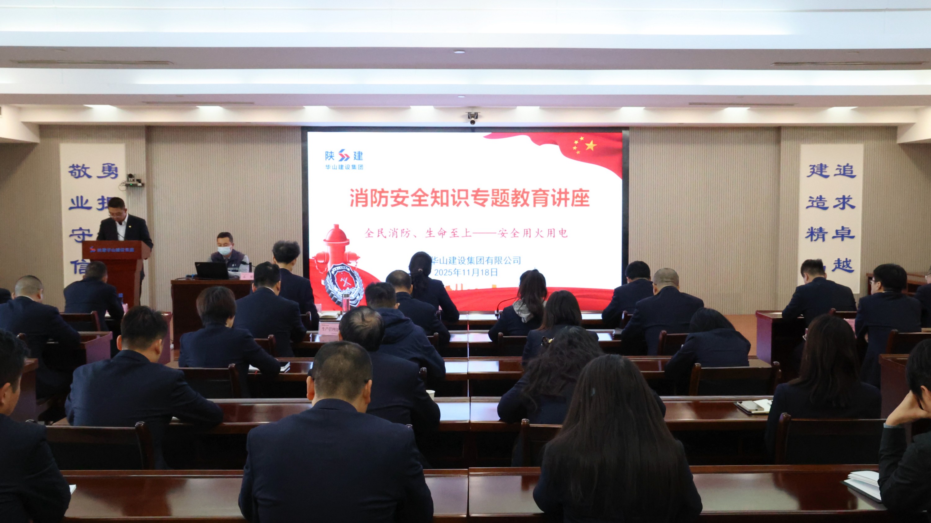 近日,陜建華山建設(shè)集團(tuán)舉辦消防安全知識專題教育講座暨辦公場所消防疏散演練。集團(tuán)副總經(jīng)理吳猛出席活動并講話。
