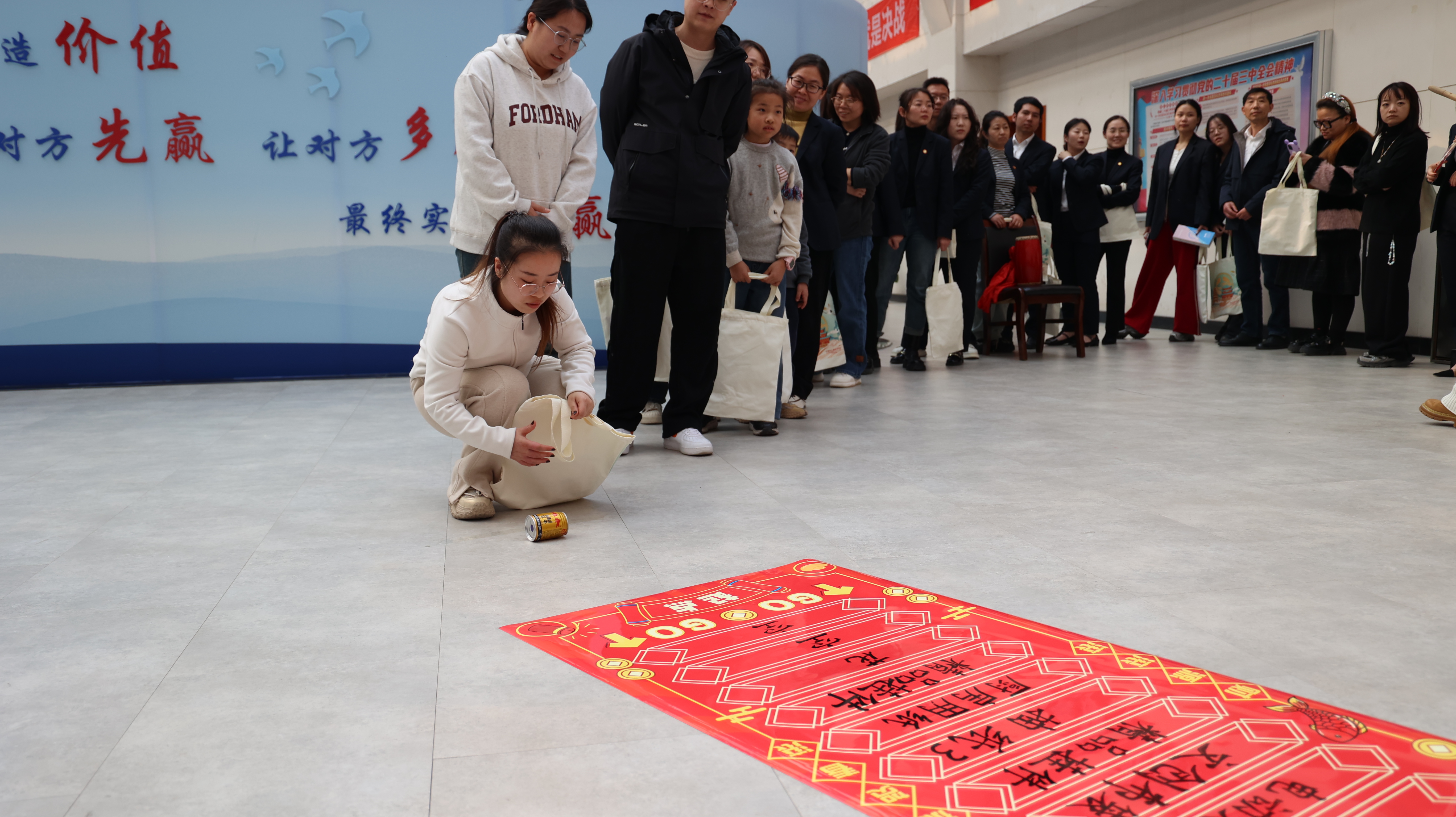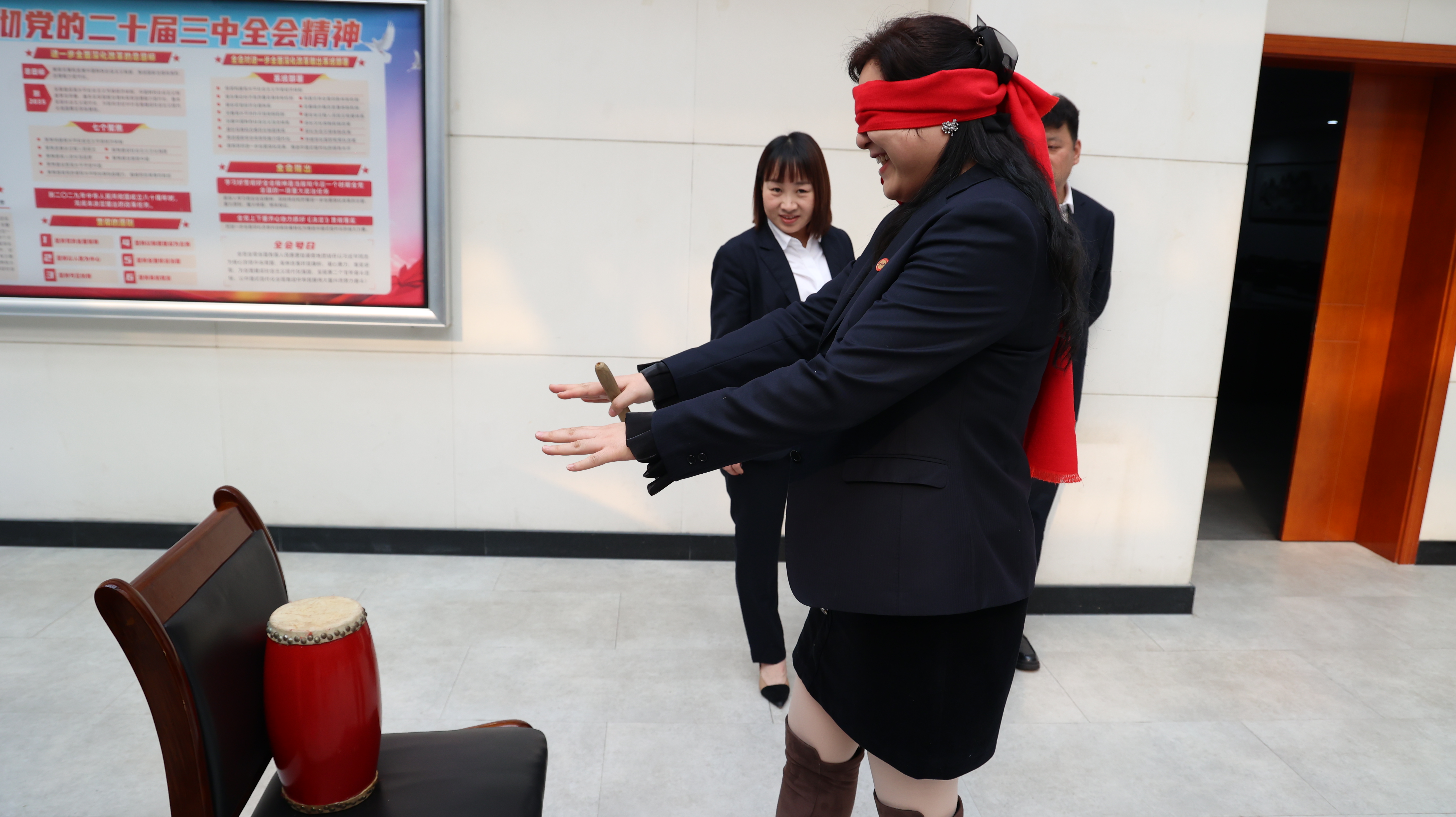 “左邊,左邊一點兒,多了多了,再回去一點兒”“可以了,快敲快敲”一次次鼓槌下落都伴隨著場外“熱心觀眾”的歡呼聲和掌聲,職工們在這充滿趣味的游戲中,感受著濃濃的節(jié)日氛圍。